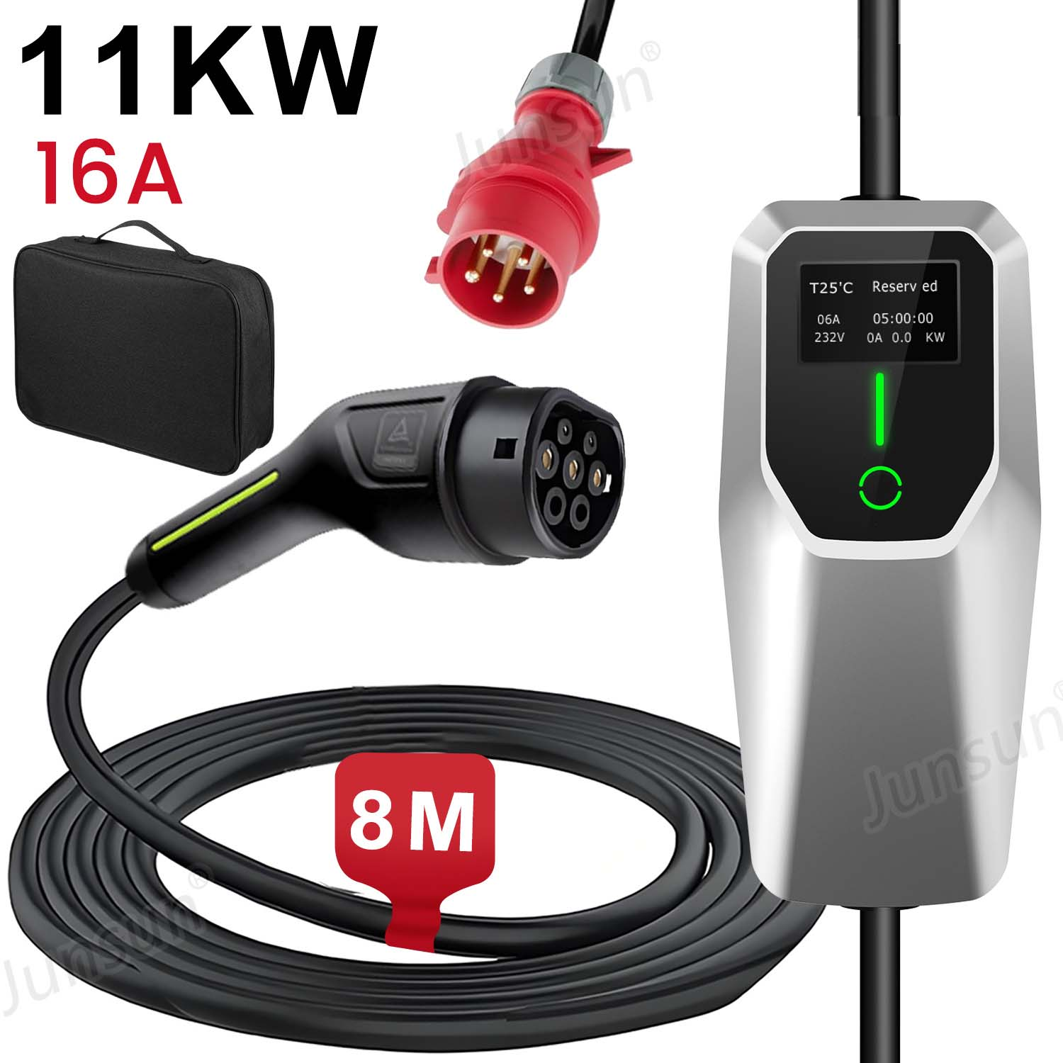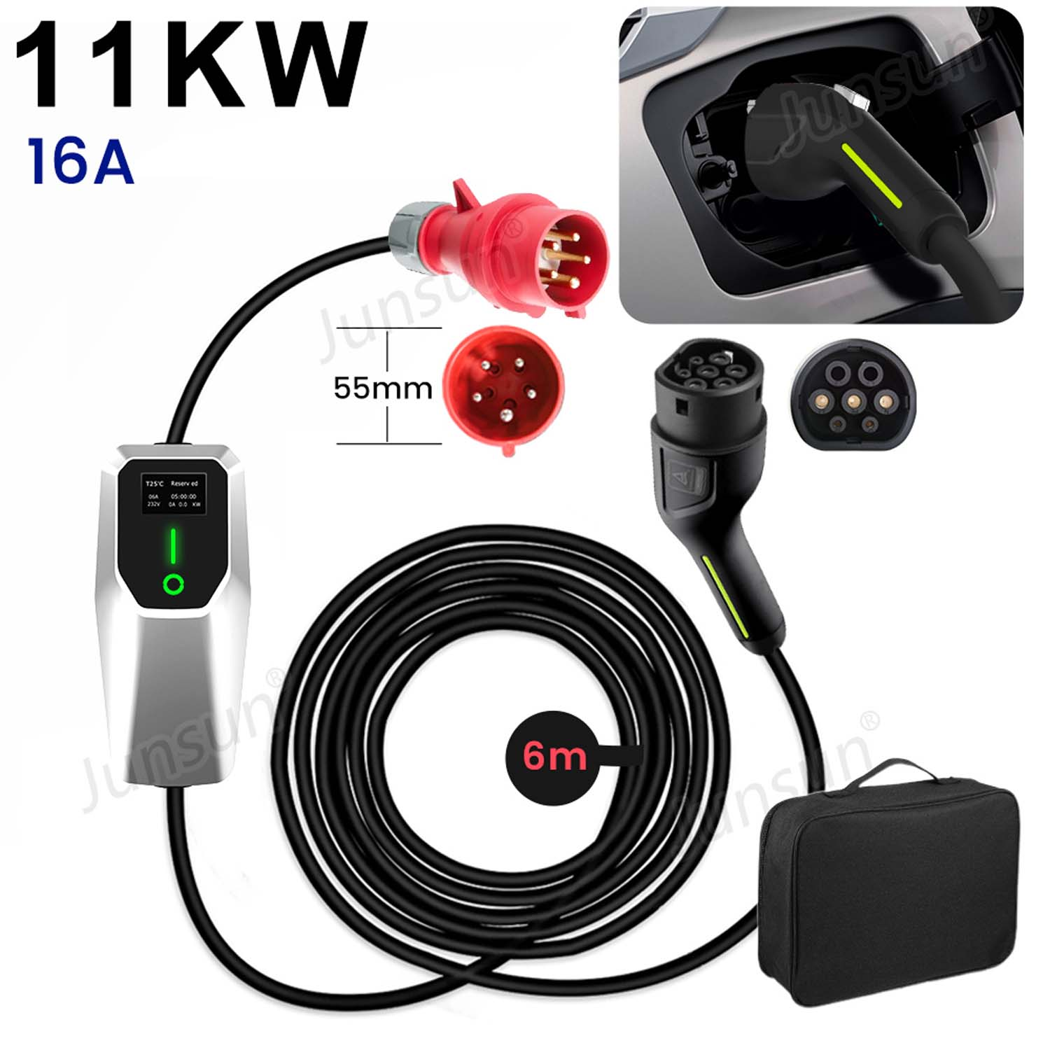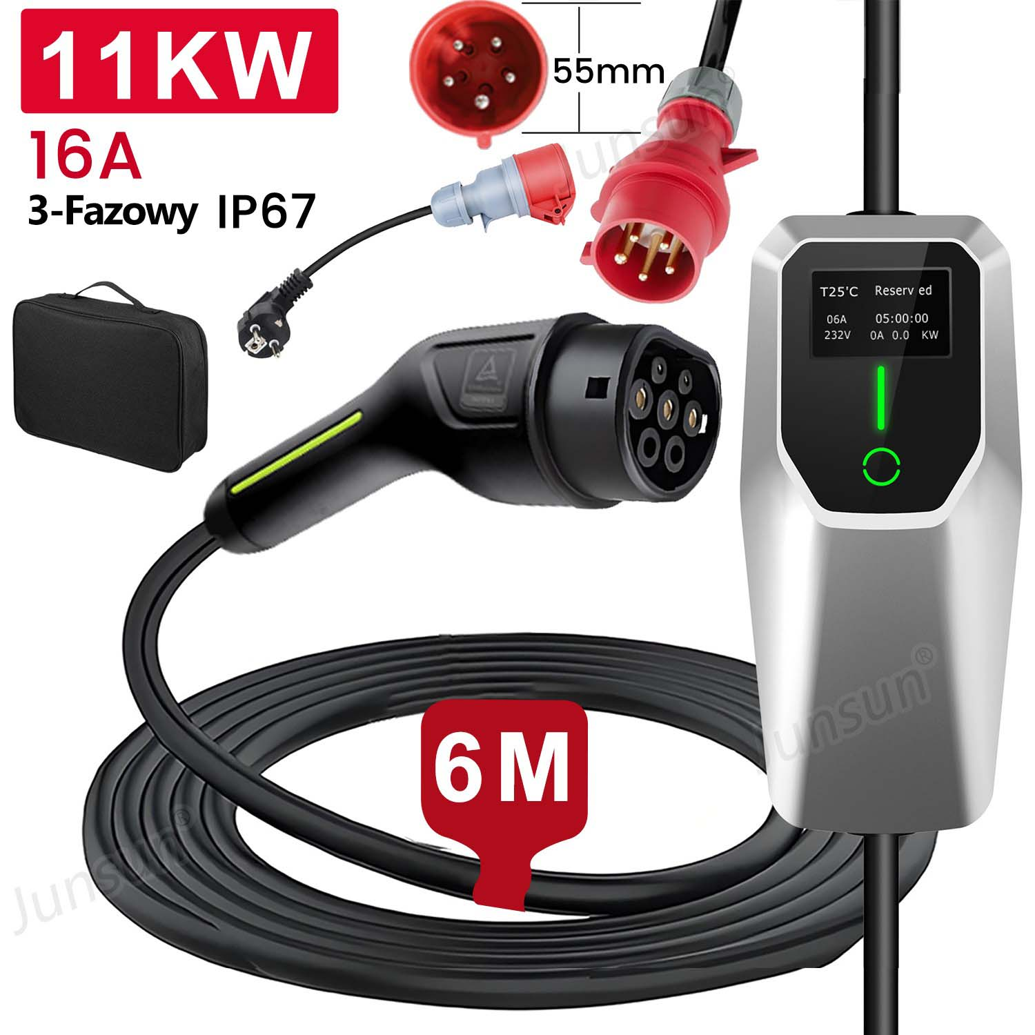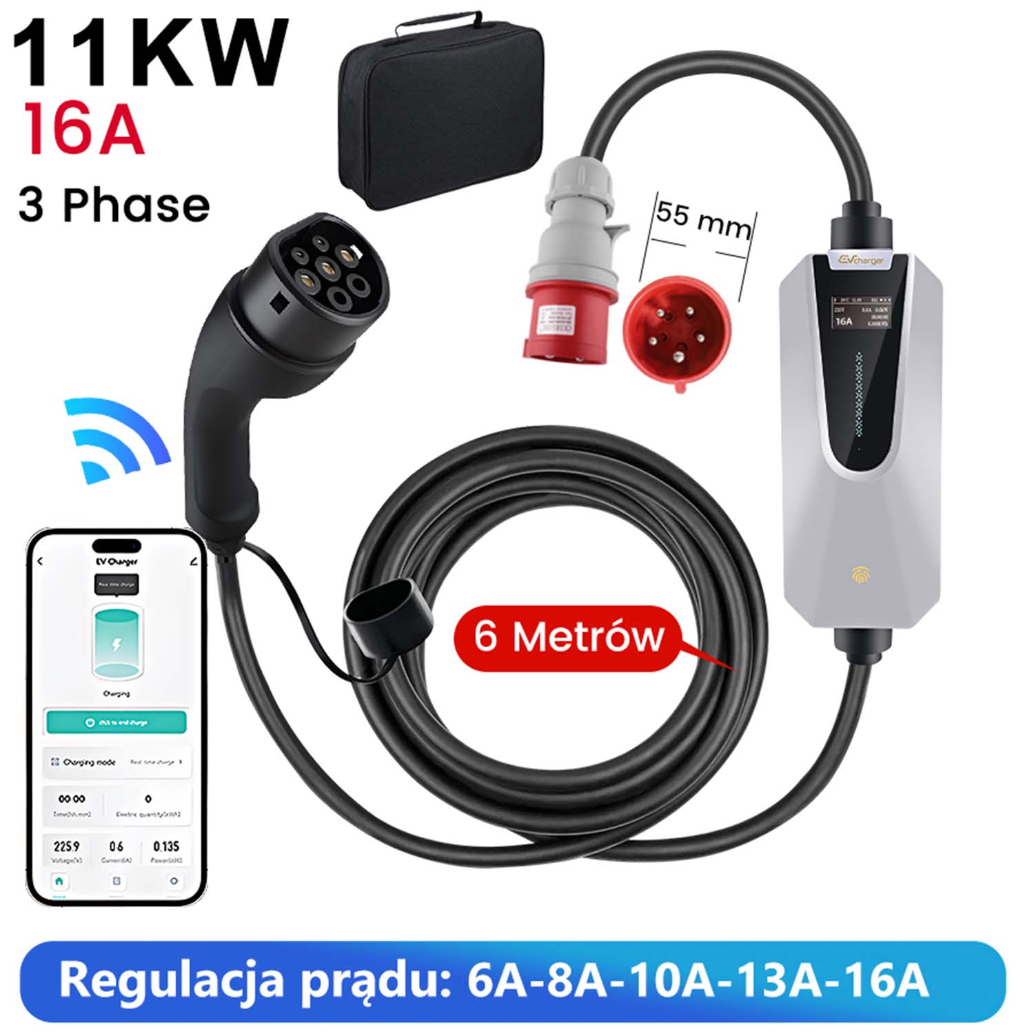 Wallbox AWESAFE 11kw 8m 16A 3-fazowy kabel do ładowania pojazdów elektrycznych typu2 czarny