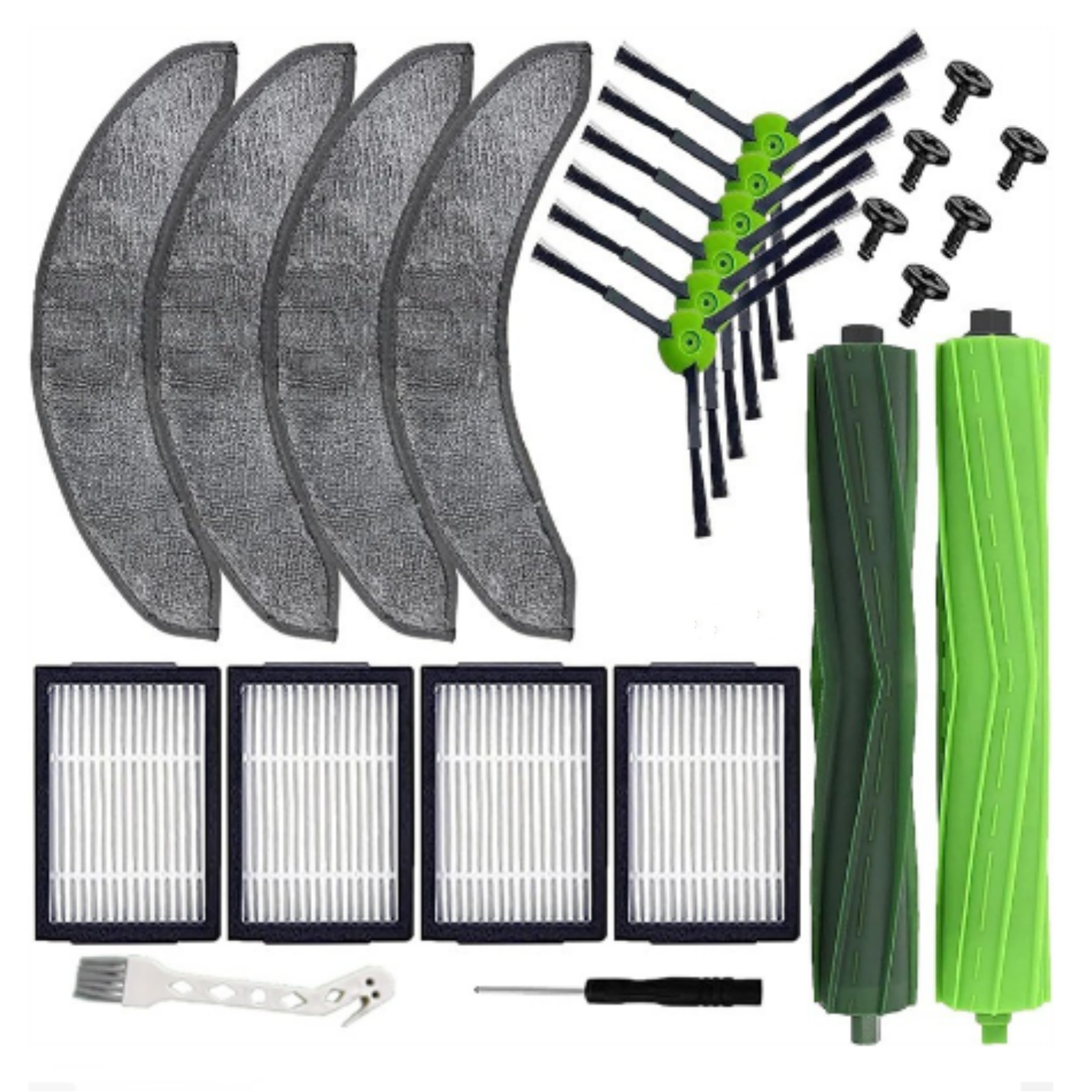 2 x szczotki do głów 4x filtry HEPA 4x mopy 6 x szczotki boczne 1 x śrubokręt 6 x śrub