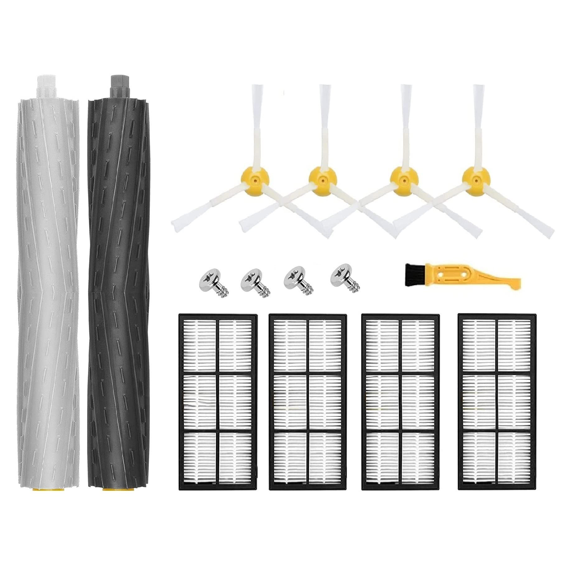2 x szczotki główne, 4 x filtry, 4 x szczotki boczne, 4 x śruby, 1 x szczotka czyszcząca