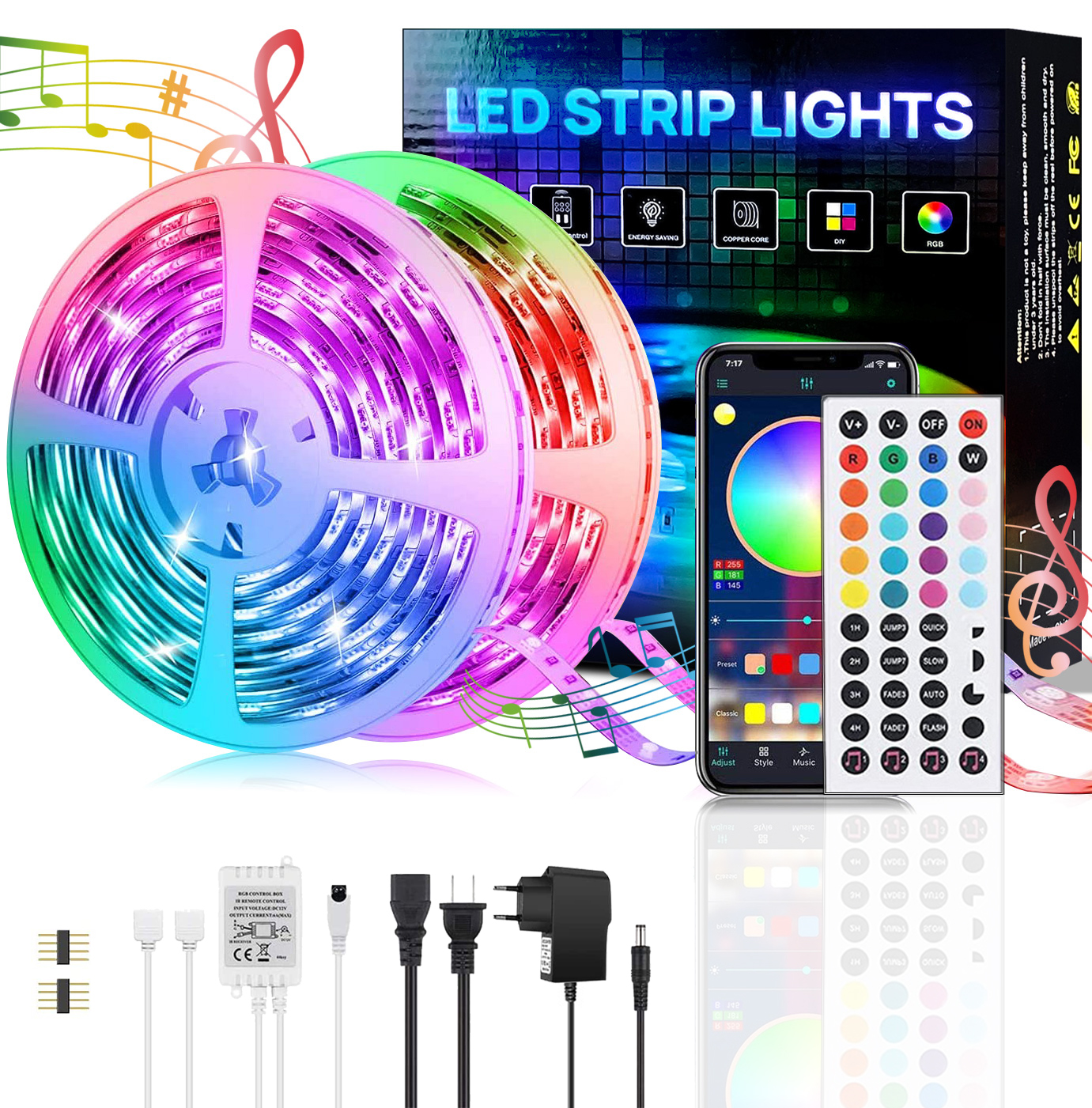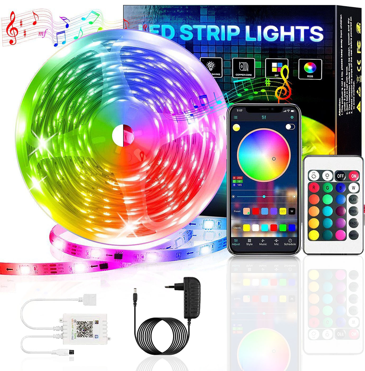 Taśma LED KINSI Pasek świetlny 15M z pilotem RGB