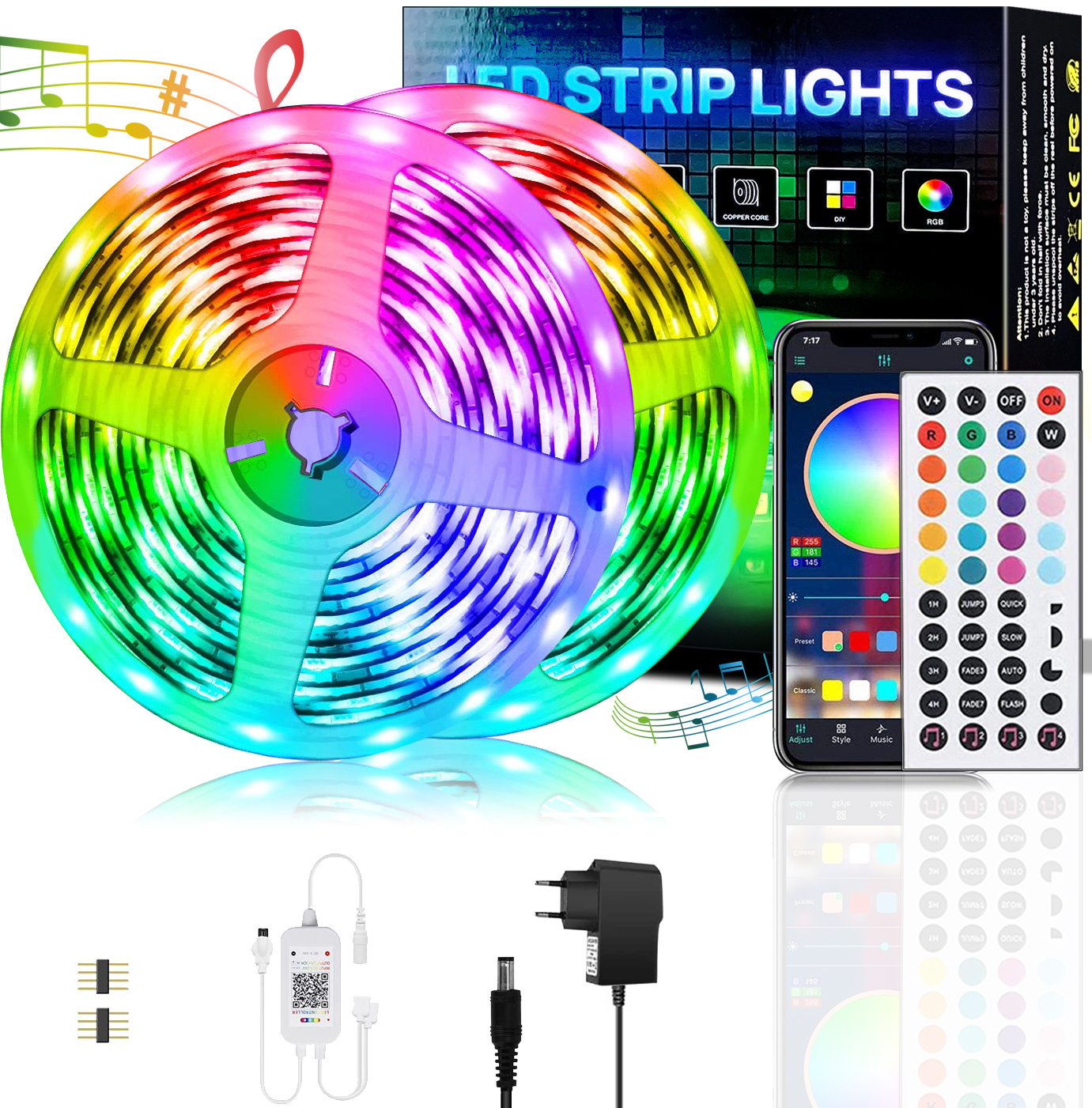 Taśma LED KINSI Pasek świetlny Bluetooth 10 m z pilotem RGB