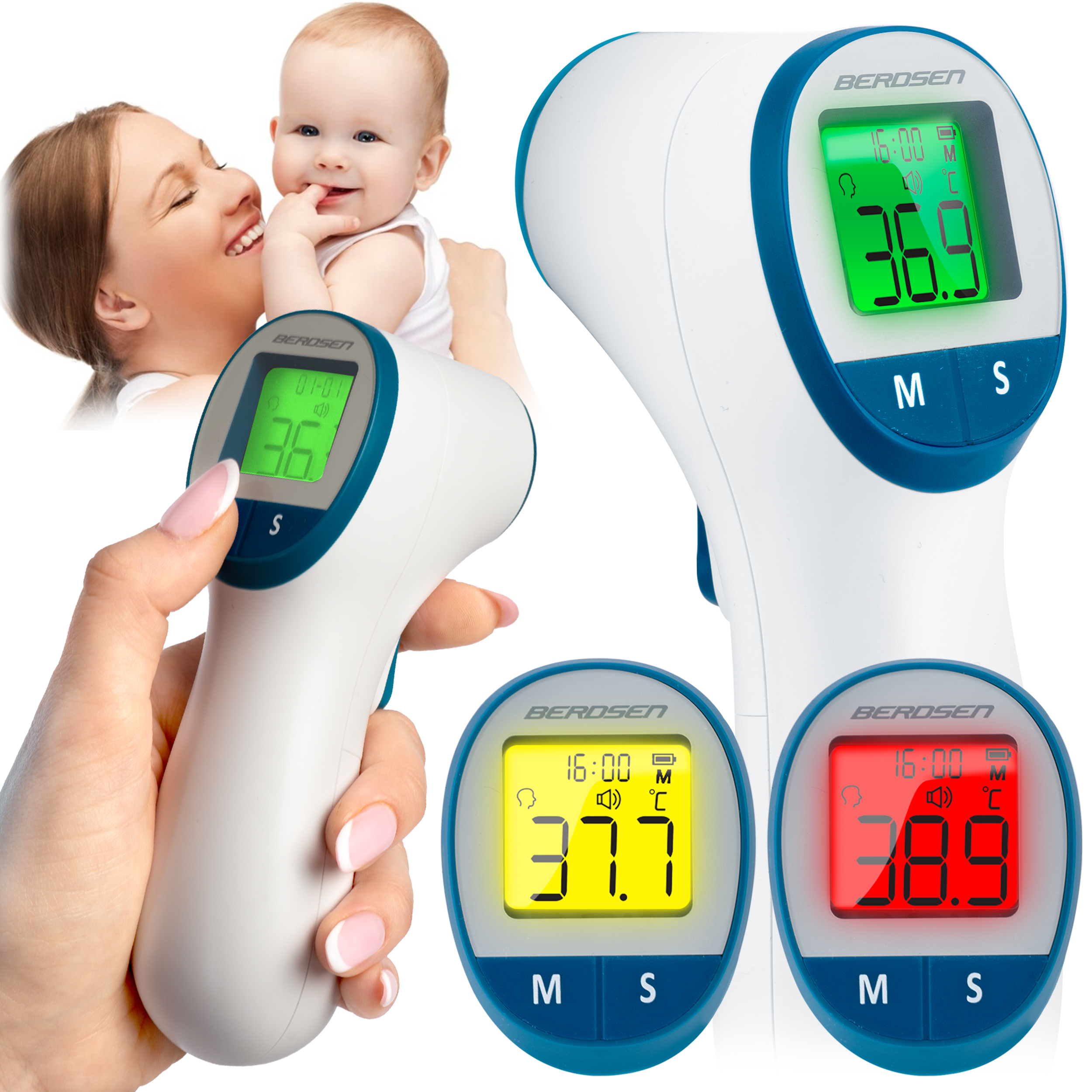 • elektroniczne termometry dotykowe – do pomiaru pod pachą, w ustach lub rektalnie, z czujnikiem cyfrowym,