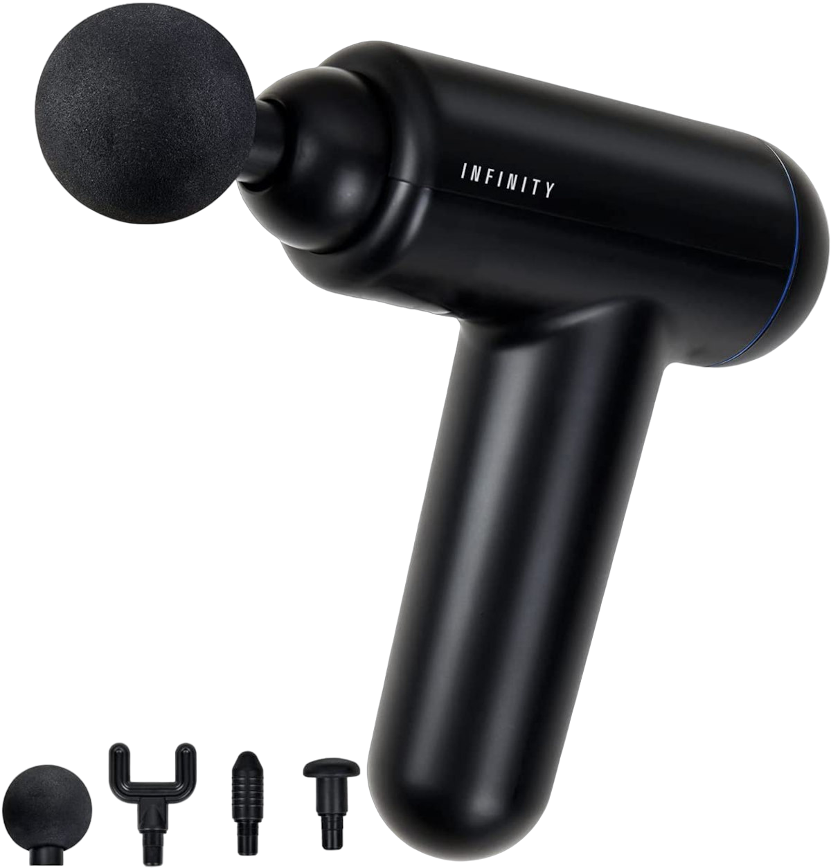 Pistolet do masażu, 4 głowice (okrągła, płaska, widełkowa, pocisk), kabel USB do ładowania, instrukcja obsługi