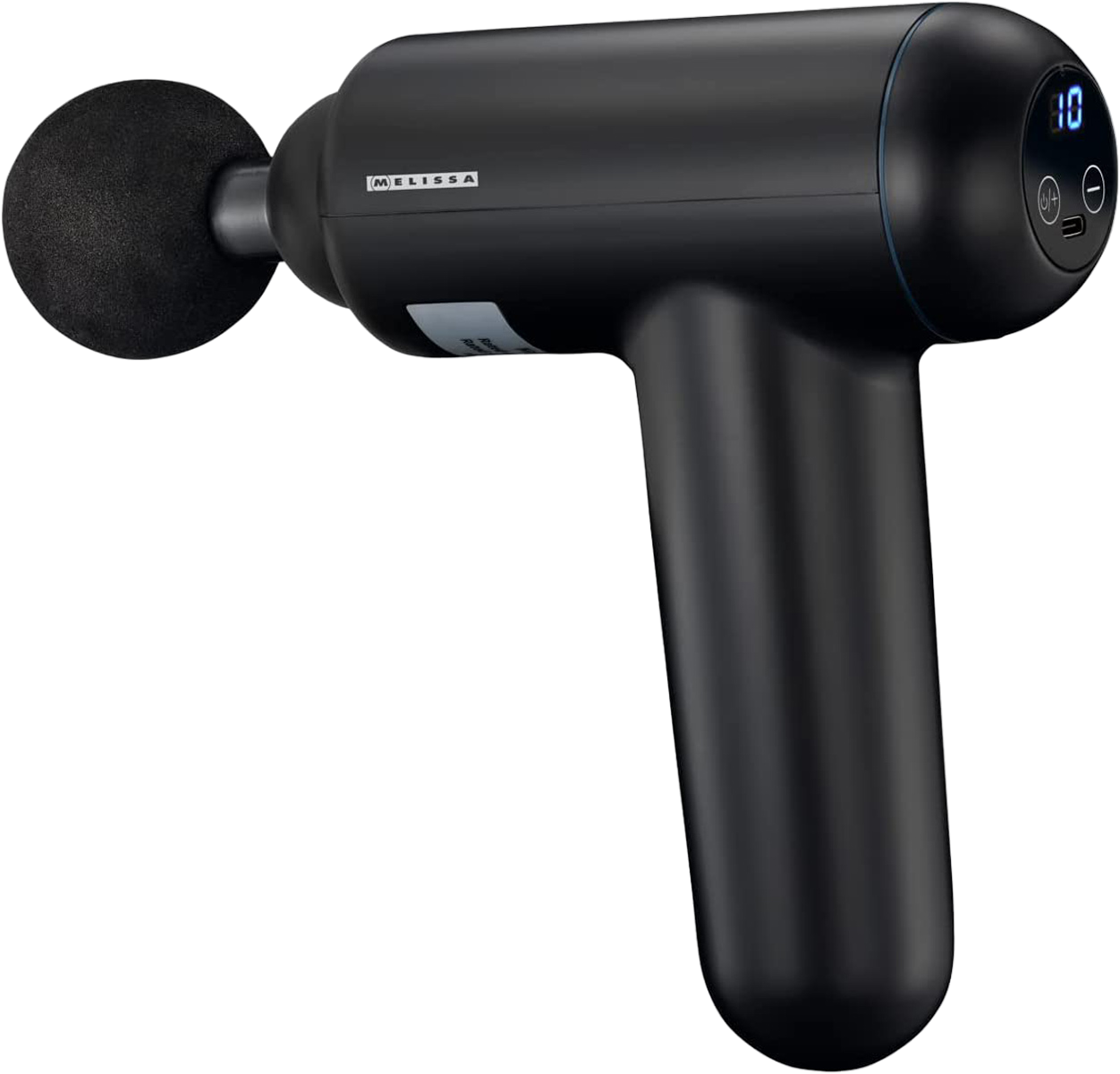 Pistolet do masażu MELISSA 16770048, 32 poziomy 2000–3000 RPM, LED, 4 głowice, auto wyłączenie 15 min, USB Czarny