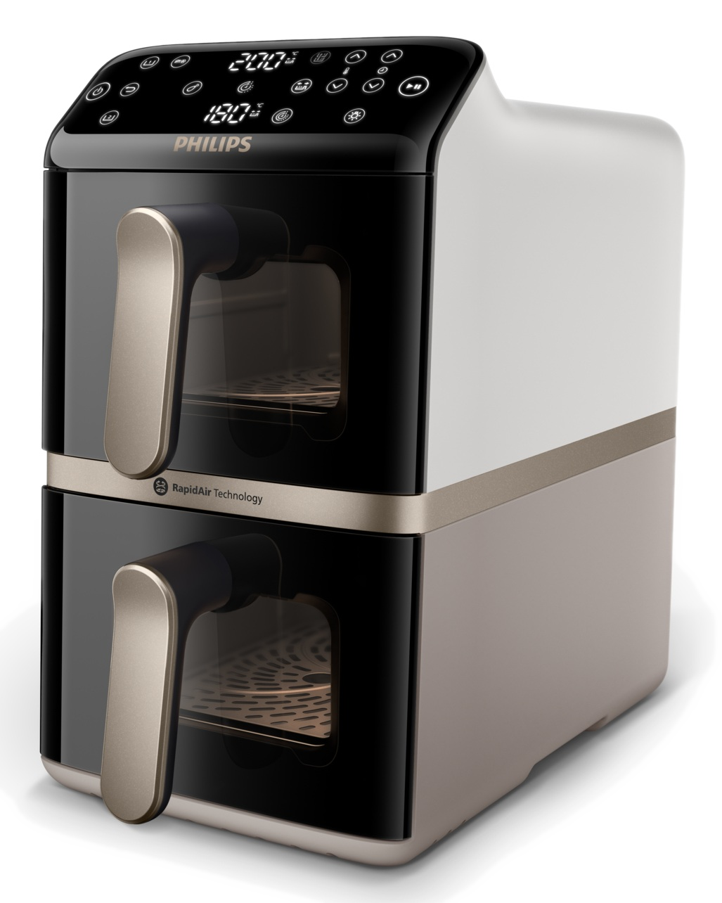 Frytkownica beztłuszczowa Air fryer PHILIPS NA555/00 Dual Basket Airfryer Series 5000 z funkcją gotowania na parze Srebrny