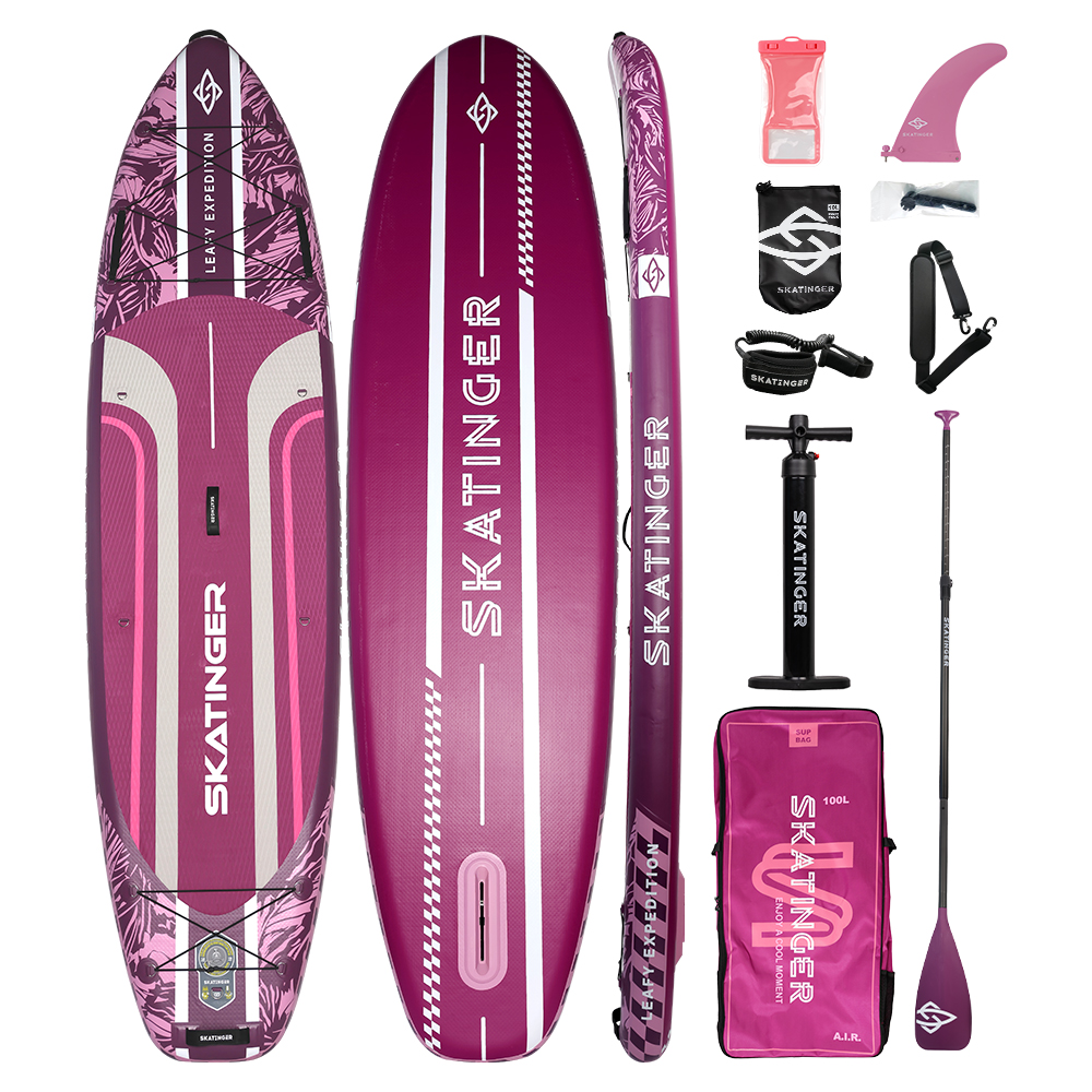 Deska SUP SKATINGER Leafy Expedition Pink 350x89x15 cm (11'6''), pełny zestaw różowy