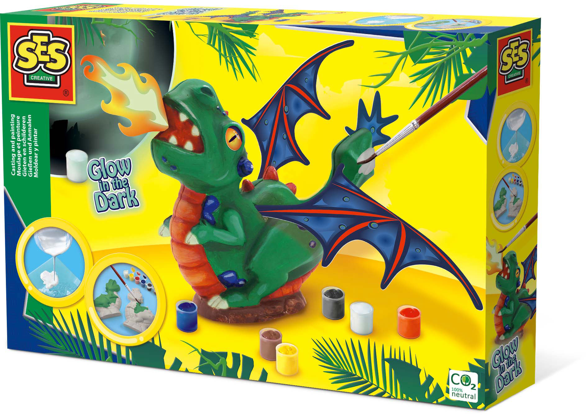 1x Zabawki artystyczne i rękodzielnicze,Zawartość opakowania:Plaster Mould Smoothing tool 6 paint colours 1 pot of glow-in-the-dark paint Glue Brush Printed details Instructions,Rodzaj opakowania:Pudełko,Liczba dołączonych farb:6,Liczba form:2
