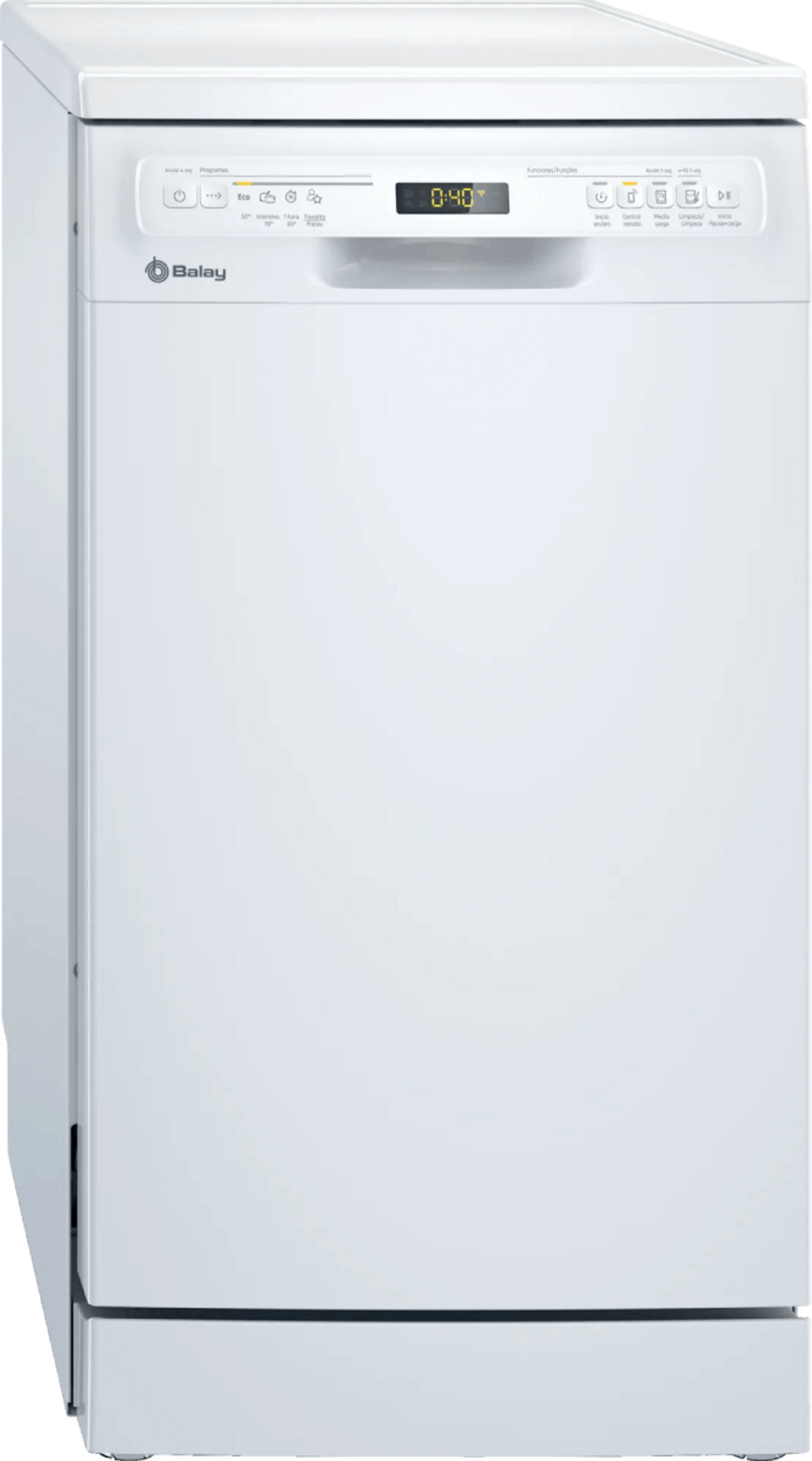 Eco 50 °C, Auto 45-65 °C, Garnki 70 °C, Godzinny 65°C, Cichy 50 °C, Ulubiony