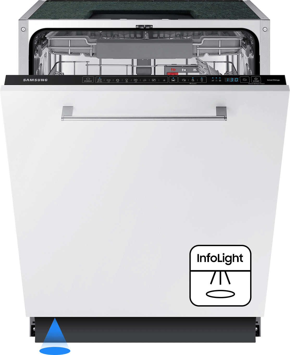 wyświetlacze LED – ułatwiające monitorowanie przebiegu programu i informujące o konieczności uzupełnienia soli czy nabłyszczacza,