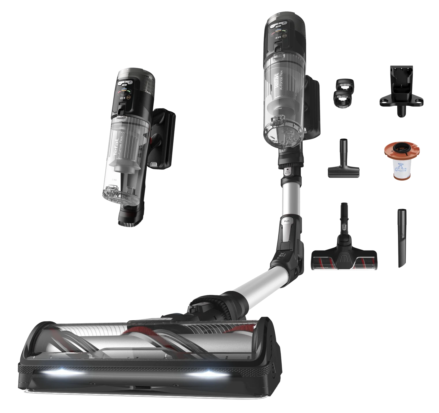 Odkurzacz bezprzewodowy TEFAL TY9A55E0 X-Force Flex 13.60 Allergy Complete jest wyposażony w dwa typy elektroszczotek – uniwersalną oraz przystosowaną do parkietów. Dzięki innowacyjnej, elastycznej rurze Flex, sprzątanie pod meblami jest wygodne i szybkie, bez potrzeby schylania się. Wydajna bateria 25,9 V pozwala pracować nawet do 60 minut w trybie ECO, gwarantując pełną mobilność bez kabla. System filtrowania Allergy Complete zatrzymuje do 99,9% cząstek kurzu i alergenów, dbając o czystość i zdrowie w domu.