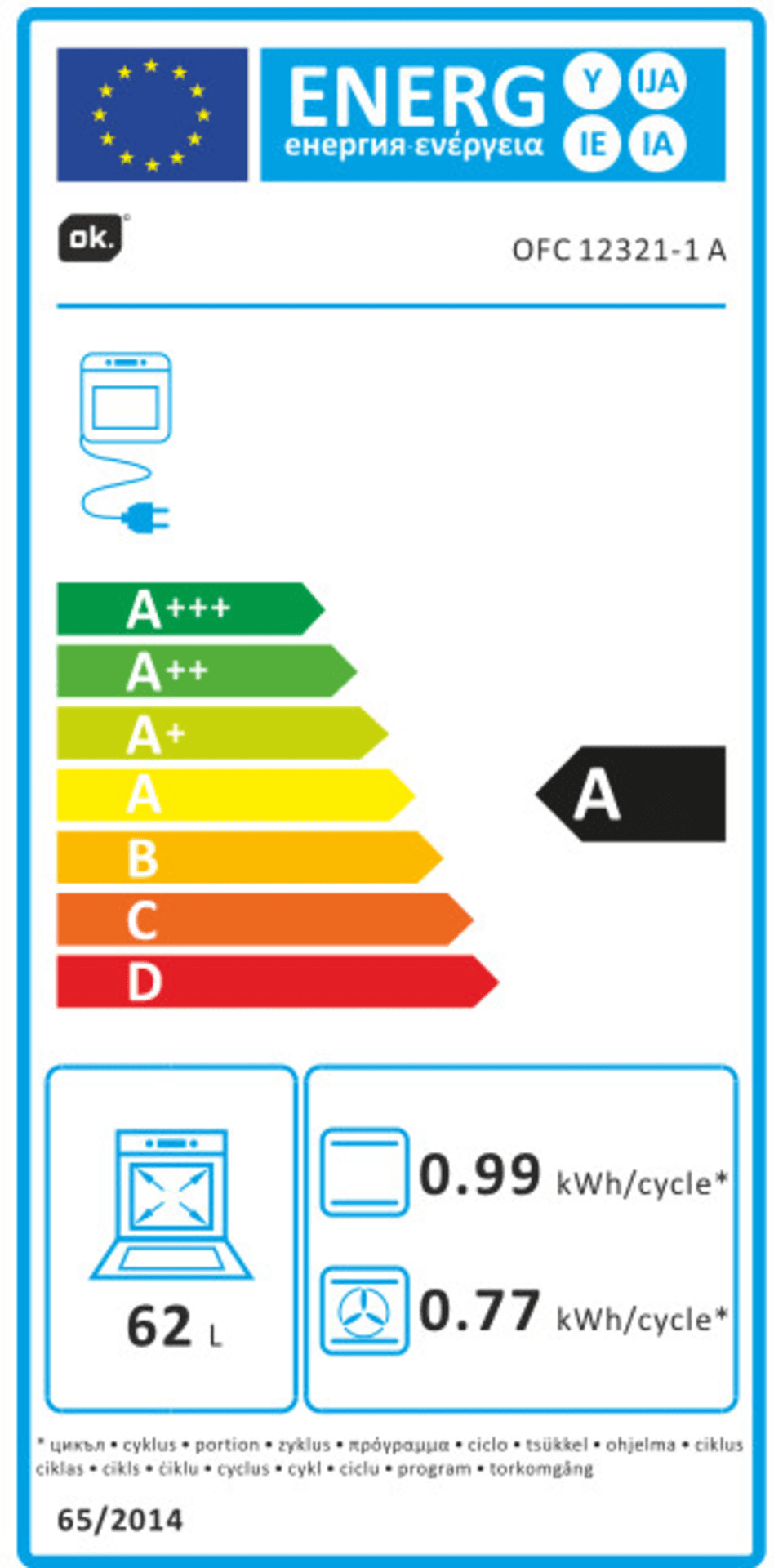 Pojemność piekarnika w ok. OFC 12321-1 ma 62 litry, to przestronne wnętrze daje mnóstwo miejsca do przygotowywania dużych posiłków i pieczenia ciast czy zapiekanek. Idealny na rodzinne obiady lub jeśli chcesz zabawiać gości.
