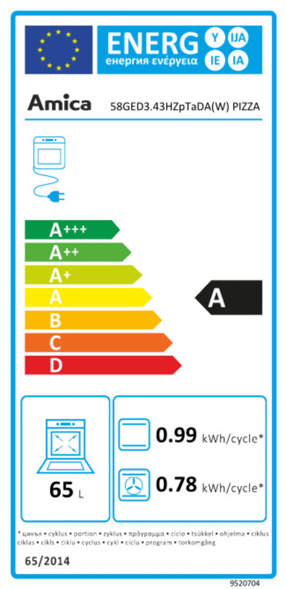 Pojemność piekarnika [l] | 65 l |