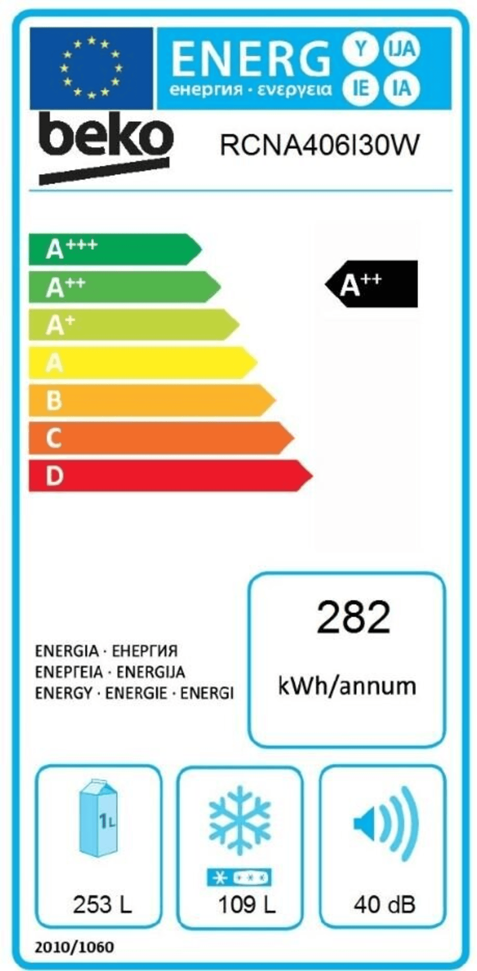 Pojemność chłodziarki | 253 l |
