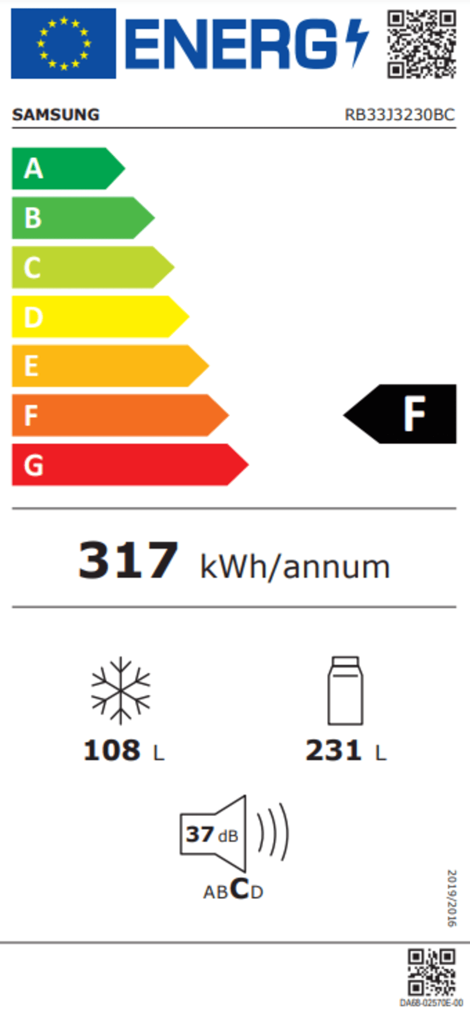 Pojemność chłodziarki | 231 l |