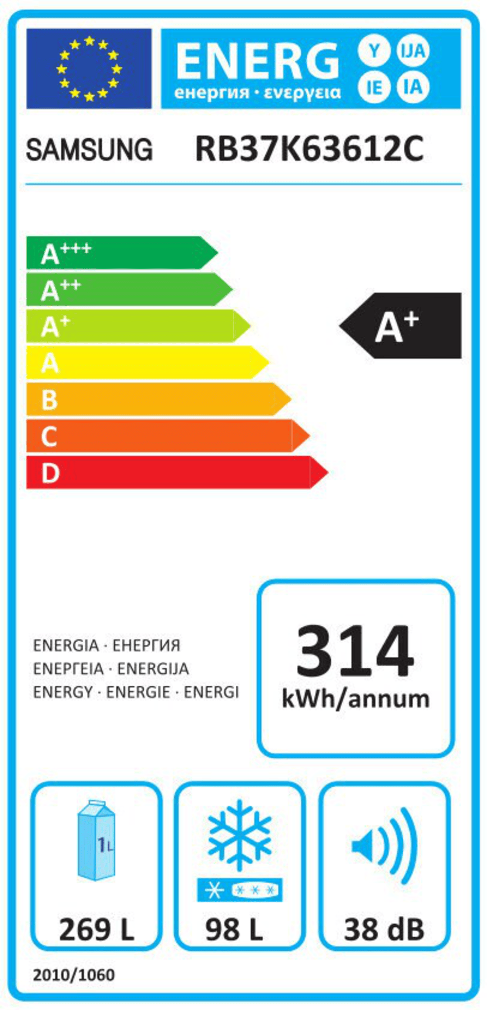 Pojemność chłodziarki | 269 l |