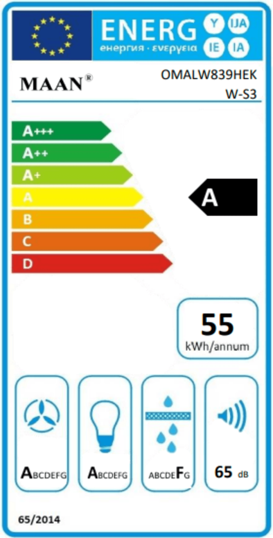 Skala efektywności energetycznej UE | A+++ to D |