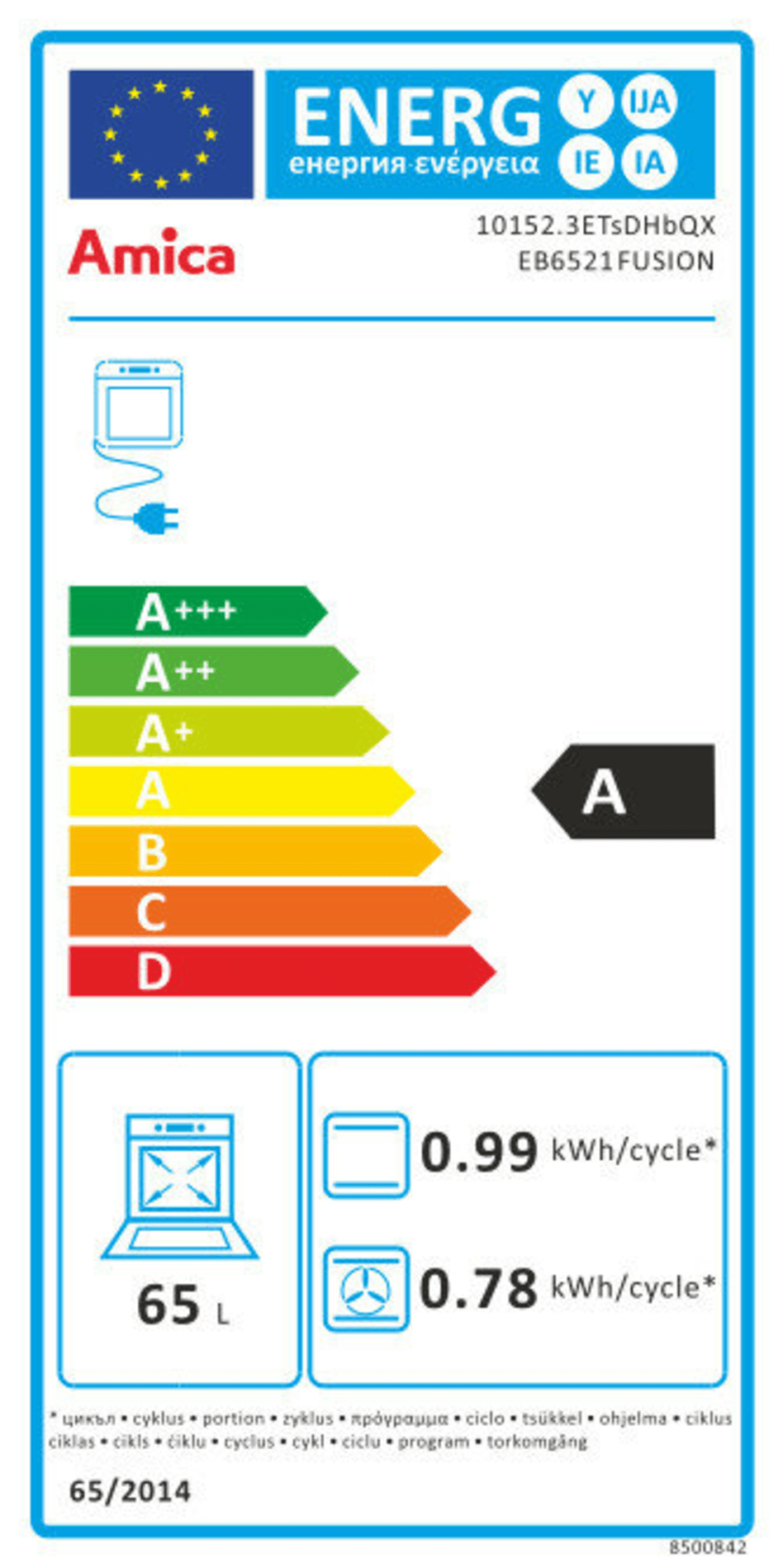 Pojemność piekarnika [l] | 65 l |