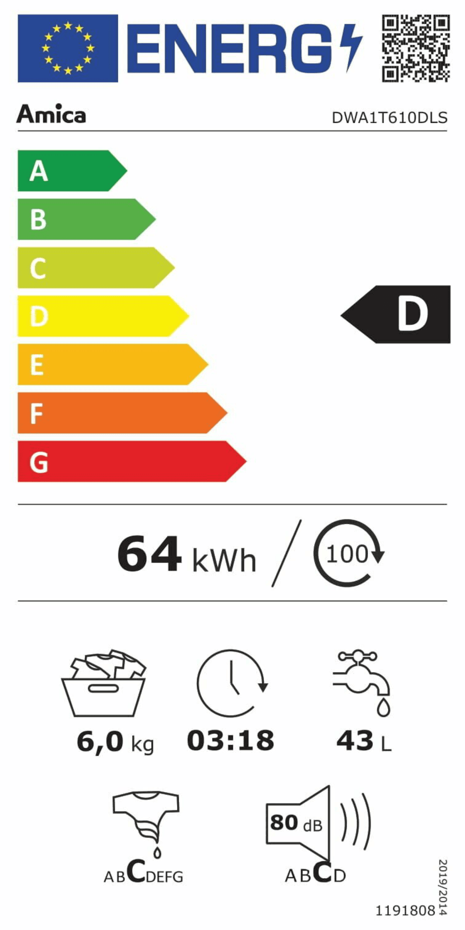 Pralka AMICA DWA1T610DLS