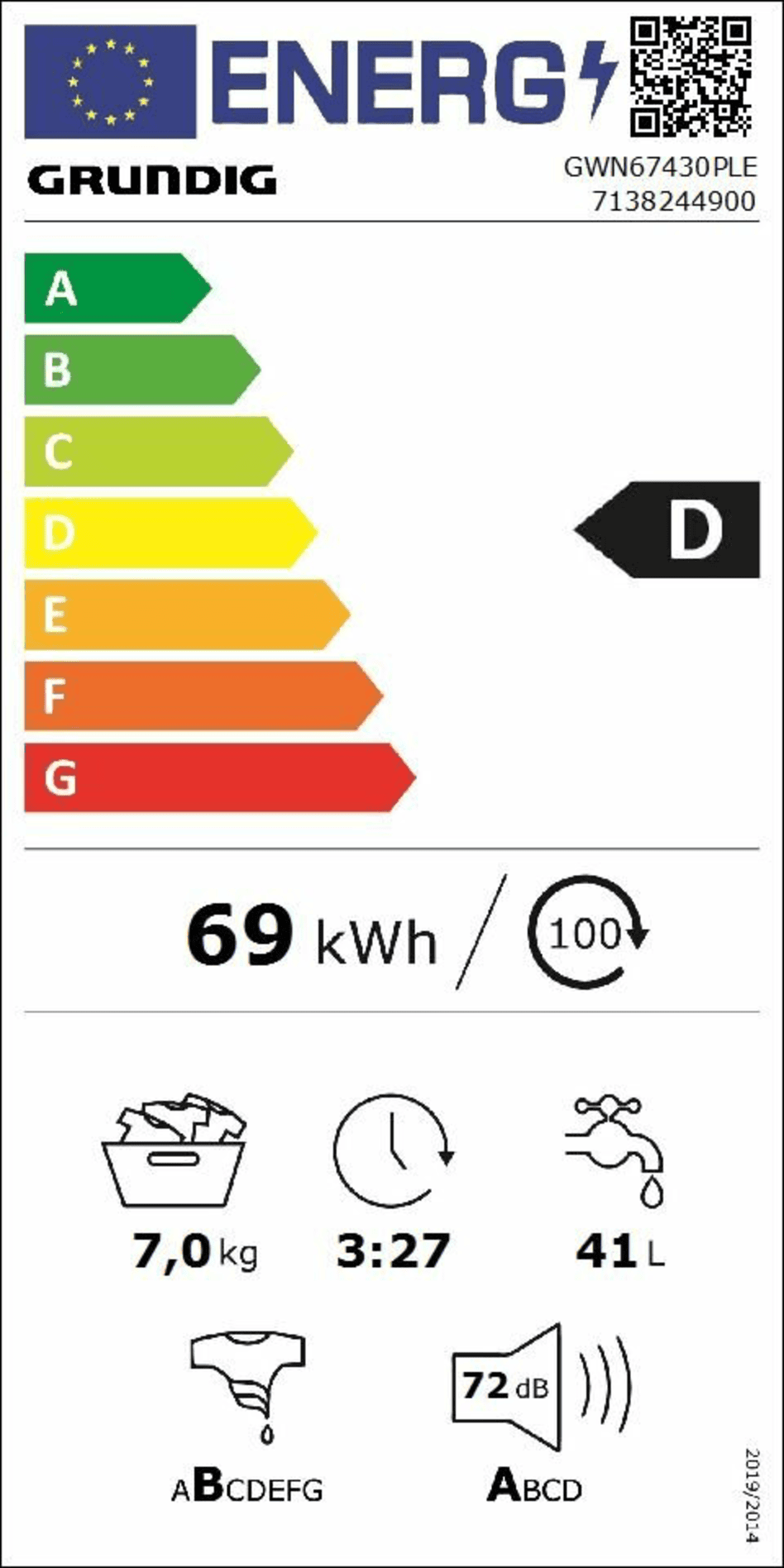 Pralka GRUNDIG GWN67430PLE