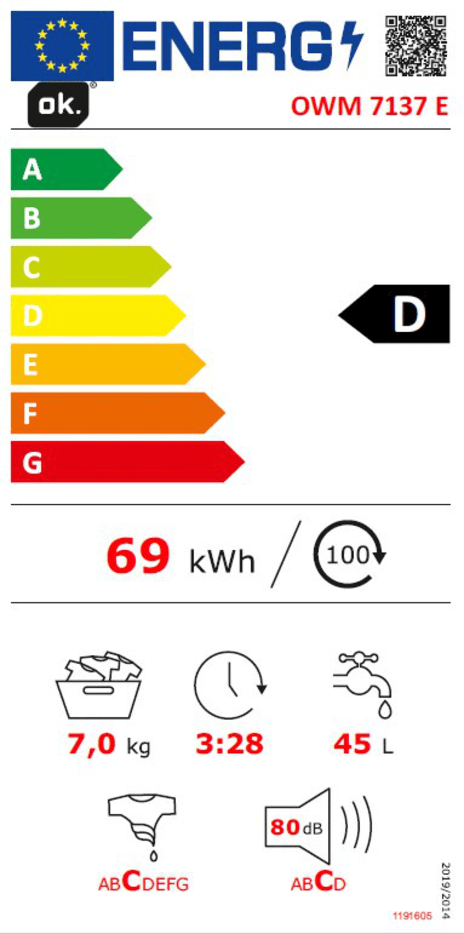 Poziom hałasu podczas wirowania [dB] | 80 dB(A) |