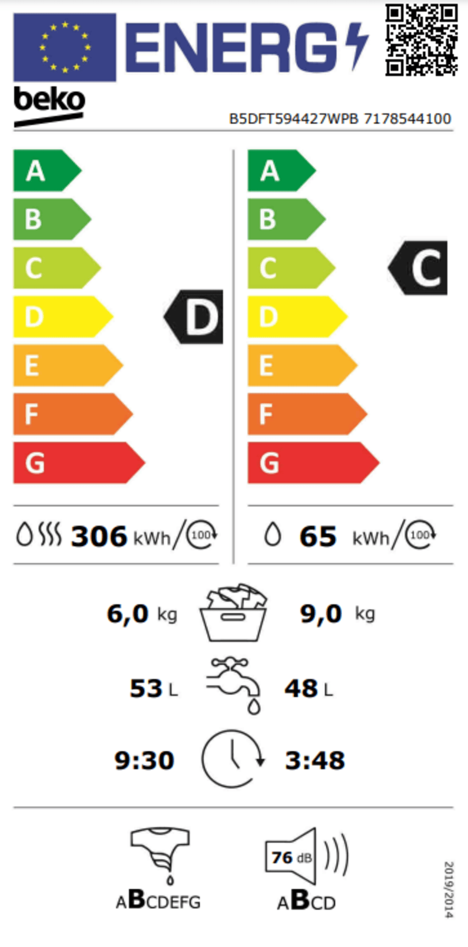Porównaj wersjePralko-suszarka wolnostojąca BEKO B5DFT594427WPB