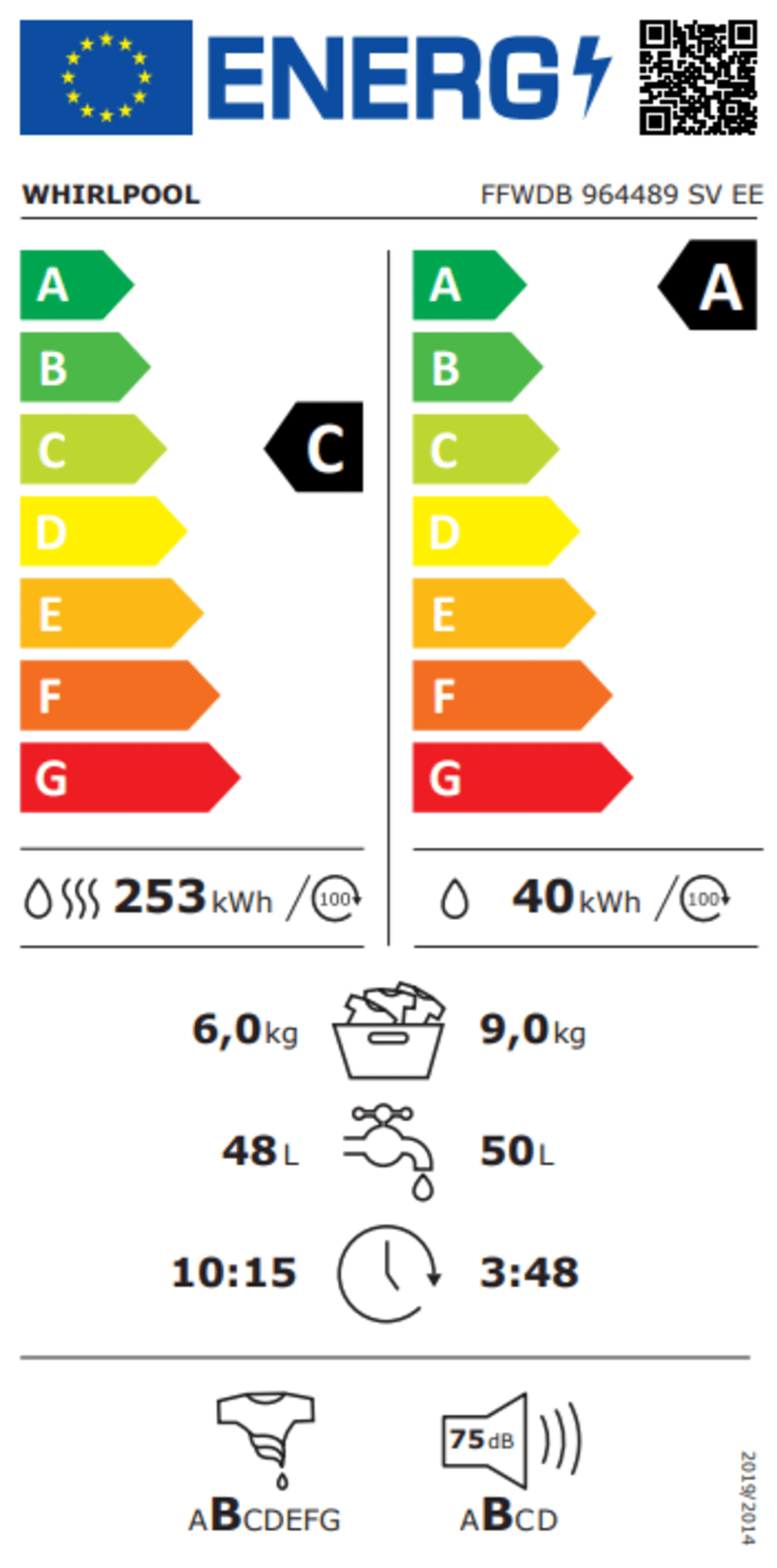 Pralko-suszarka WHIRLPOOL FFWDB 964489 SV EE 9/6kg FreshCare+