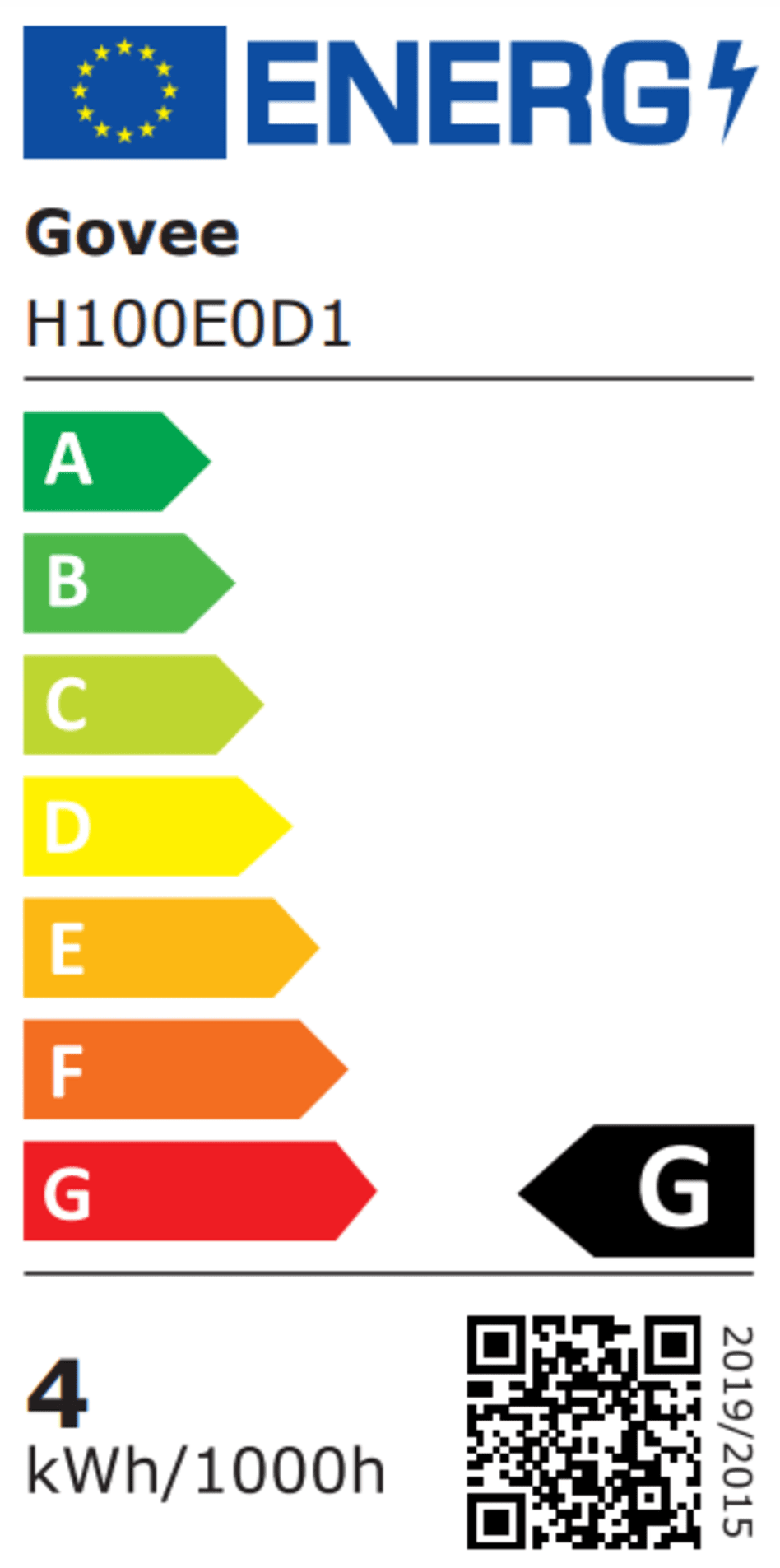 Skala efektywności energetycznej UE (UE 2017/1369) | A-G |
