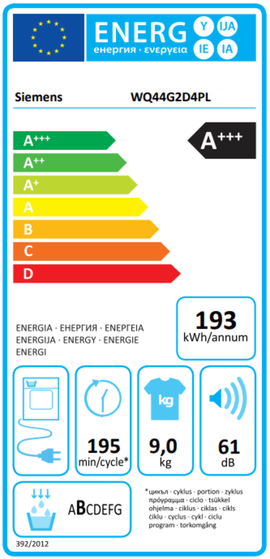 Maksymalny wsad suszarki [kg] | 9 kg |