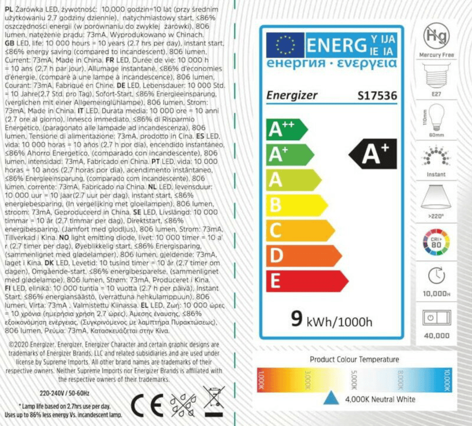 Żarówka LED ENERGIZER LED Bulb E27 806lm 60W neutralna