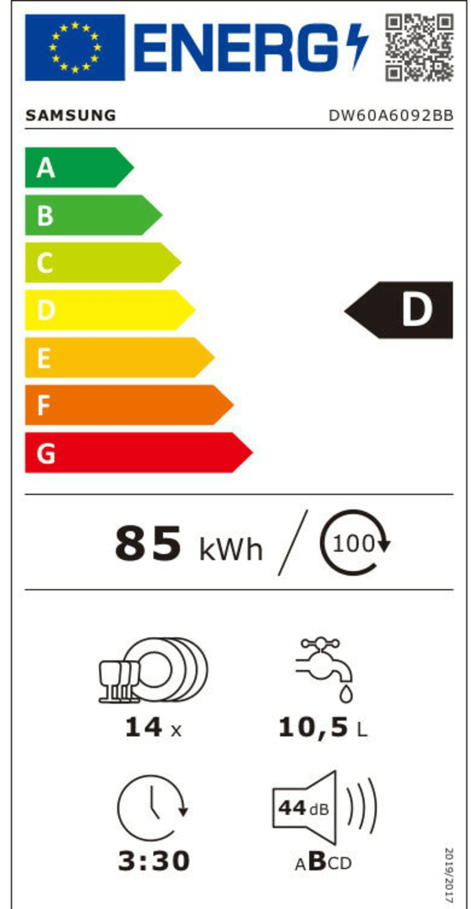 Zmywarka DW60A6092BB/EO została zaprojektowana z myślą o oszczędności – zarówno energii, jak i czasu. Klasa energetyczna D według nowej etykiety UE oznacza, że urządzenie zużywa mniej prądu, zachowując przy tym wysoką skuteczność mycia. To rozwiązanie dla osób, które chcą dbać o środowisko i domowy budżet.