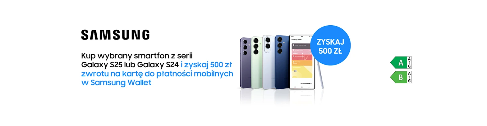 Promocja w dn. 05.01.2026 r. - 18.01.2026 r. Modele Galaxy S25 i S25 FE nie biorą uziału w promocji. Wirtualna karta, wydawana przez Planet Pay sp. z o.o., umożliwia płatności mobilne za pośrednictwem Samsung Wallet. Dostępność Samsung Wallet i jego funkcji może się różnić w zależności od modelu urządzenia, wydawcy i typu instrumentu płatniczego użytkownika, operatora oraz wersji oprogramowania. Szczegóły w regulaminie promocji.
