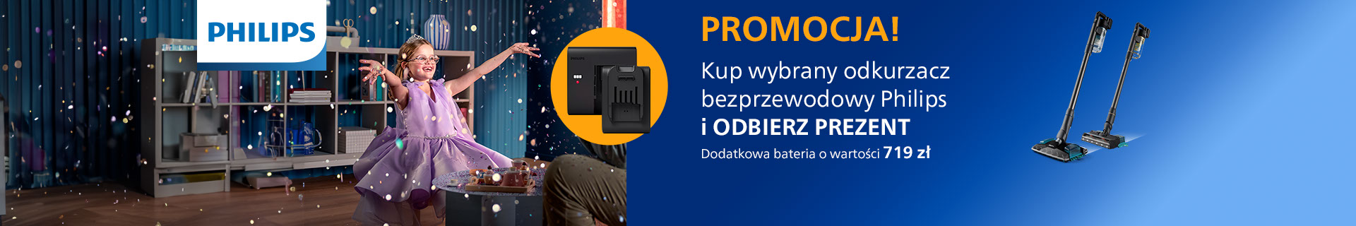 1. Kup wybrany odkurzacz bezprzewodowy Philips objęty promocją.