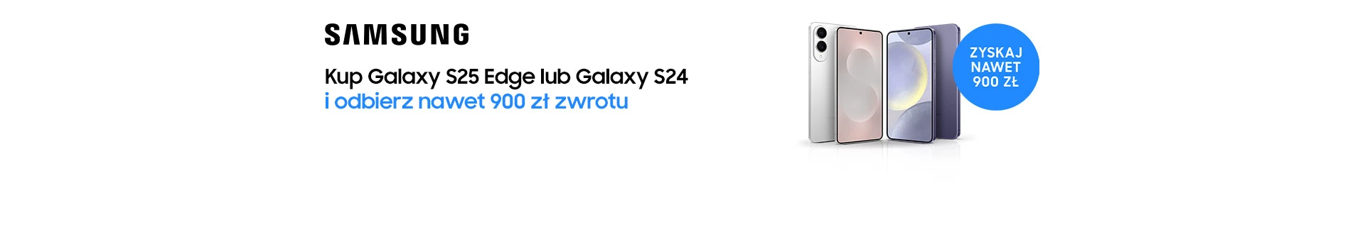 *Promocja trwa od 28.07.2025 r. do 10.08.2025 r. Zwrot dla Galaxy S25 Edge wynosi 500 zł, a dla Galaxy S24 900 zł. Szczegóły i ograniczenia w regulaminie na stronie zwrotserias.samsung.pl