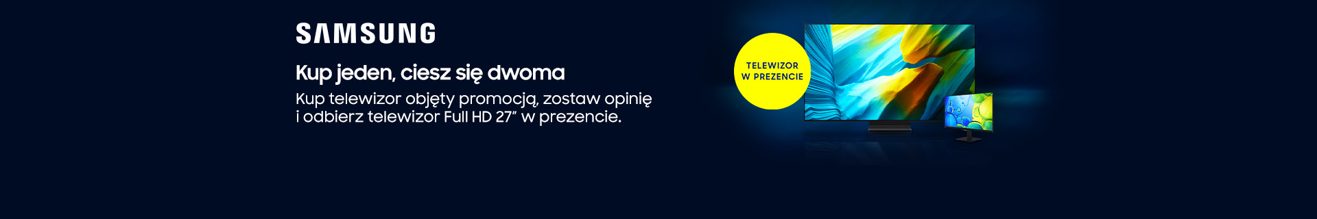 4. Jakie telewizory biorą udział w promocji?Modele telewizorów Samsung objęte promocją to: QE85QN990FTXXH, QE75QN990FTXXH, QE85QN900FTXXH, QE75QN900FTXXH, QE83S95FAEXXH, QE77S95FATXXH, QE85QN92FATXXH, QE75QN92FATXXH, QE83S90FAEXXH, QE77S90FAEXXH, QE83S85FAEXXH, QE77S85FAEXXH, QE85QN85FAUXXH, QE75QN85FAUXXH, QE85QN80FAUXXH oraz QE75QN80FAUXXH. Nagrodą w promocji jest telewizor 27” Full HD Smart TV Samsung (UE27F6002FKXXH.)