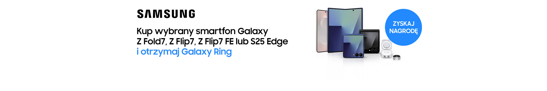 *Promocja trwa od 01.10.2025 r. do 12.10.2025 r. Nagrodą jest Galaxy Ring (limit nagród wynosi 475 szt.). Po wyczerpaniu powyższych benefitów przysługuje Galaxy Buds3 Pro (limit nagród wynosi 100 szt.). Szczegóły i ograniczenia promocji w regulaminie.